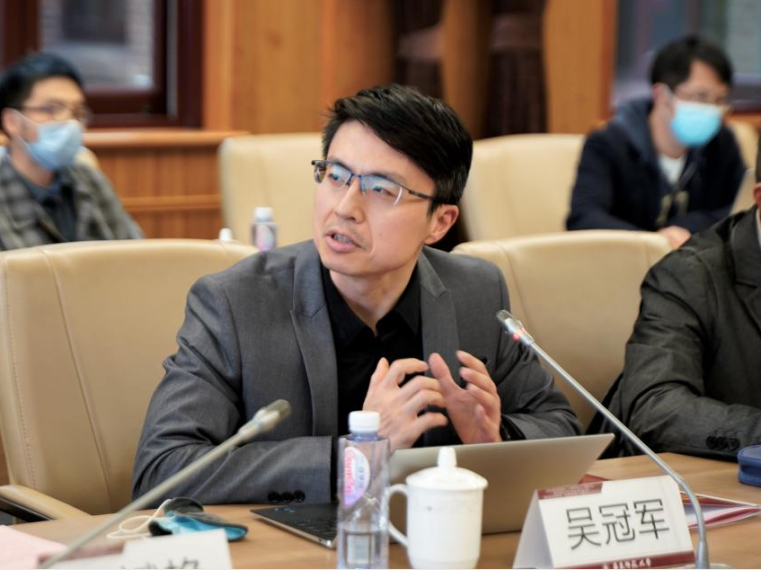 吴冠军代表新一届理事会发言,他表示新一届理事会将在市总会和学校党委的领导和支持下,以此次合并换届为契机,更加紧密团结广大会员,不忘留学初心,砥砺奋进新征程。