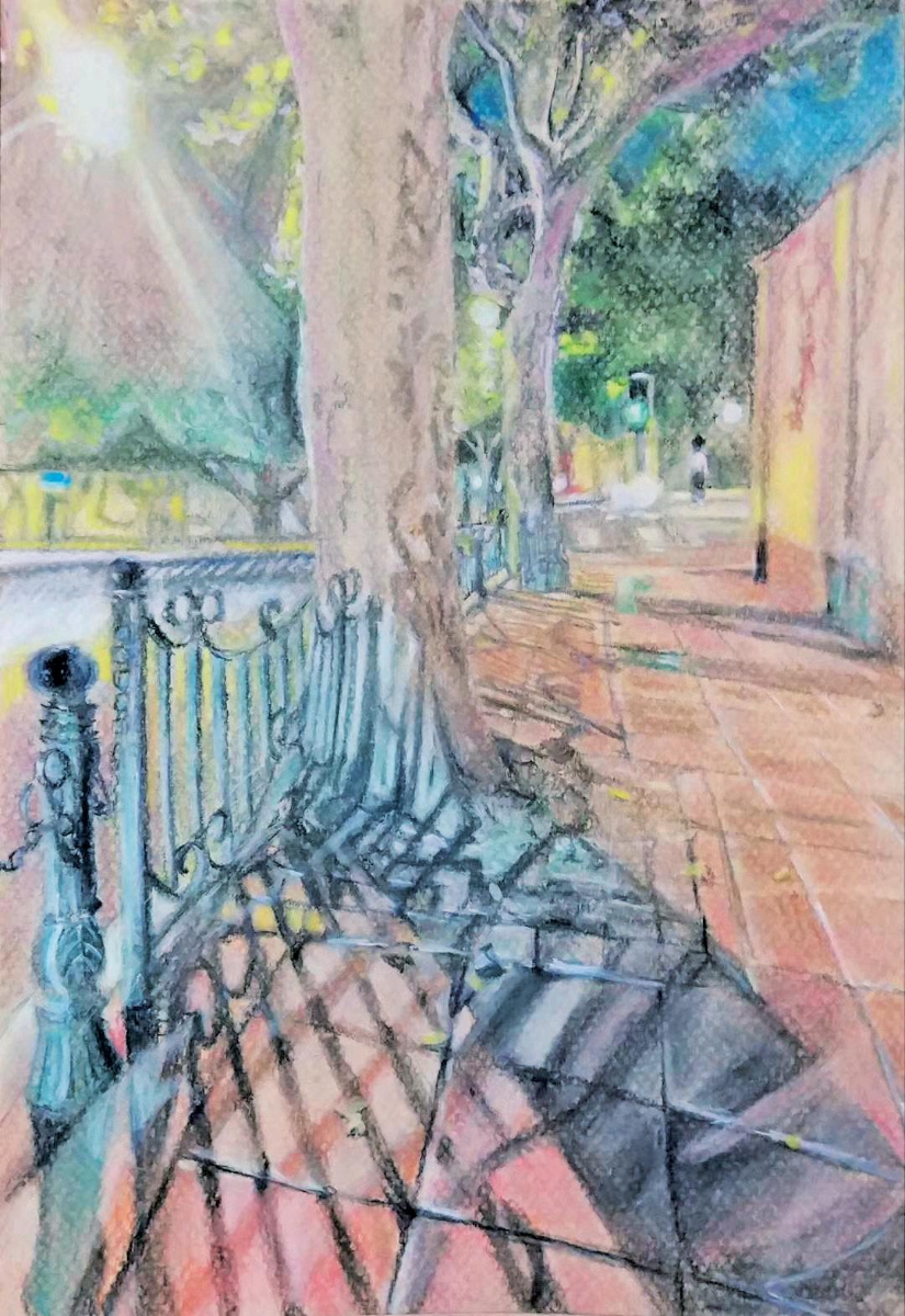 以共性而言,紧扣主题的“关注城市文化”首当其冲。多数艺术家都将城市作为创作主题,通过描绘城市景观、建筑、人物等方式,表达了他们对城市文化的理解和感悟,如蔡亚鸣的《古城佩奇的午后》、王莎莎的《悉尼映象》、张丹青的《粉笔画上海》等。其次,作为艺术表达,即便非以此为业,作品中也非常注重情感表达。海归艺术家们注重通过作品表达个人的情感和体验,如卜雪飞的《我与小满》讲述了人与宠物之间的温暖陪伴;丁文星的《love》则探讨了女性自我认知与成长的困惑与勇气。