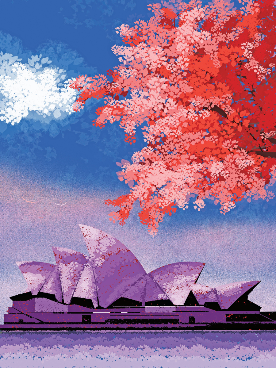 此外,海归青年的鲜明共性就是融合多元文化。海归艺术家们将国外的学习经历和文化视野融入到创作中,如王莎莎的《悉尼映象》就将澳洲的自然风光融入到作品中,形成了创作者独特的艺术风格。
