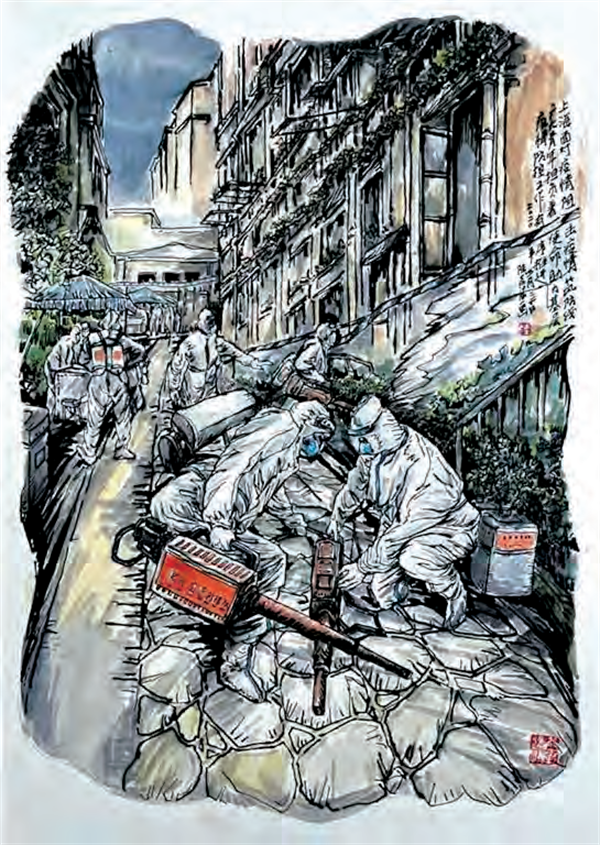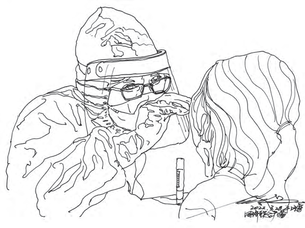 看到包括外省市医护人员乃至解放军队伍都来沪驰援,内心更是激动和感慨,压抑的心情在速写中逐步得到缓解,绘画应该展现他们的面貌,讴歌众志成城守卫上海的风采。